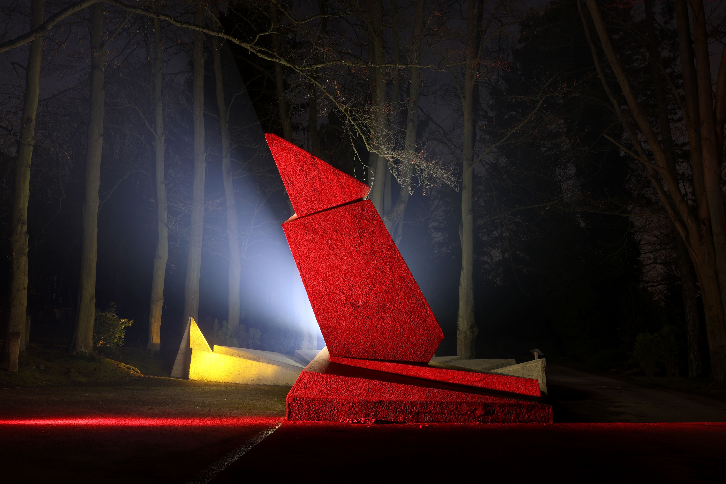 Lichtinszenierung des Fotokurs aus dem Jahr 2025 der Ruine des Tempelherrenhaus im Park an der Ilm in Weimar   Lichtinszenierung des Fotokurs aus dem Jahr 2025 am Mahnmal der Märzgefallenen auf dem Hauptfriedhof in Weimar
